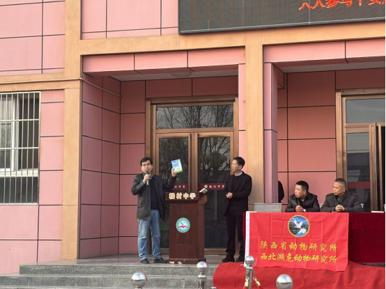 接着,石勇强以“保护珍稀动物爱科学爱祖国”为题,向师生们介绍了陕西省动物研究所及中国科学院西安分院陕西省科学院每一家单位的研究内容,随后,他以生动形象的珍稀动物研究保护案例,激励同学们要爱科学,爱祖国,努力学科学,长大了为国家做贡献,让自己的人生更加美好。石勇强还向学校赠送了《你好,金丝猴》《生态文明教育》《西安市野生动物图鉴》《陕西太白牛尾河自然保护区综合科学考察报告》《大自然》《知识就是力量》《少年月刊》《春暖我心》等科普图书。