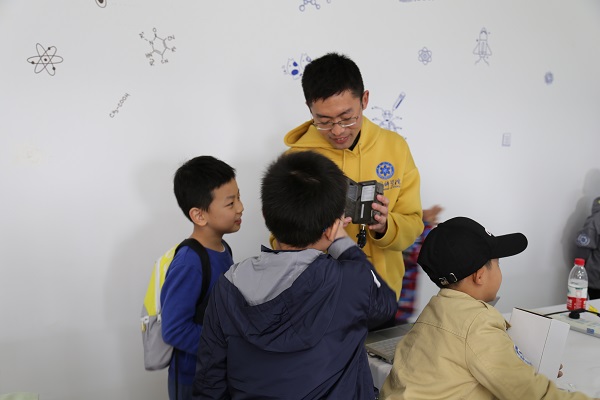 我所张洪峰老师向小朋友讲解红外相机的使用