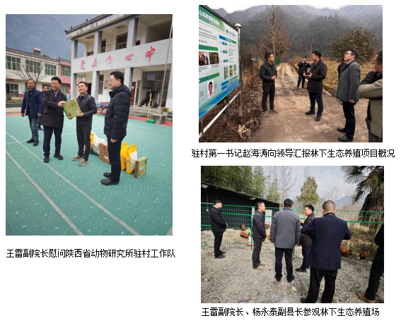 王雷亲切慰问了陕西省动物研究所驻茅坪村工作队和村民代表。王雷表示,驻村工作队要依托当地资源特点,强化科技提升养殖产业市场竞争力,增强乡村内生发展动力,确保帮扶项目可持续发展。同时王雷对陕西省动物研究所林下生态养殖项目的快速落地予以认可和表扬。并要求分省院各帮扶点发挥相互联动机制,开展针对性技术指导,推动产业规模化发展。
